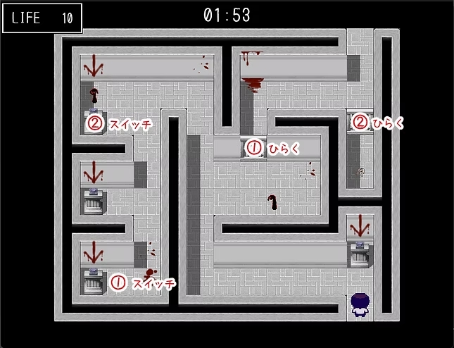 【미끄러운 바닥의 방】 문의 열쇠를 열고 싶다: 방 어딘가에 ↑↓←→를 나타내는 무언가가 있습니다.