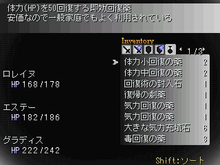 상점에서 파는 '위협의 충전석'이나 '단거리 도약의 휘석'을 사용함으로써 번거로운 전투를 회피할 수 있습니다. 너무 대량으로 소지하면 아이템 창을 압박해 다른 아이템을 가질 수 없게 되니 주의합시다.