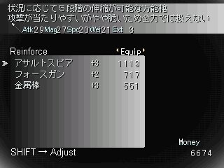 특수 장비품은 3단계의 강화를 할 수 있습니다. 강화에는 특수한 강화 소재가 필요합니다.